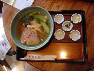 あっさりした醤油味で、「五辛(ごしん)」と呼ばれる5種の薬味(ニラ、ラッキョウ、ネギ、ニンニク、ショウガ)と共に食べます。素朴な味のラーメンでした。