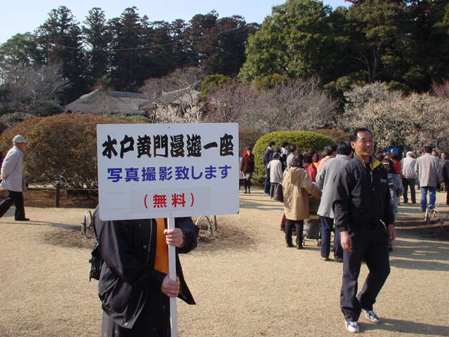 途中でやってきた「水戸黄門漫遊一座」。記念撮影無料で致しますとのこと。たちまち長蛇の列。勿論、私も並びました。